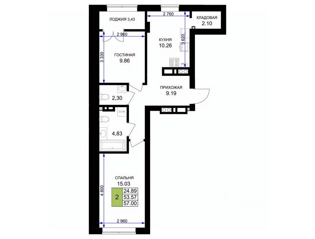 Общая площадь58,1 м²