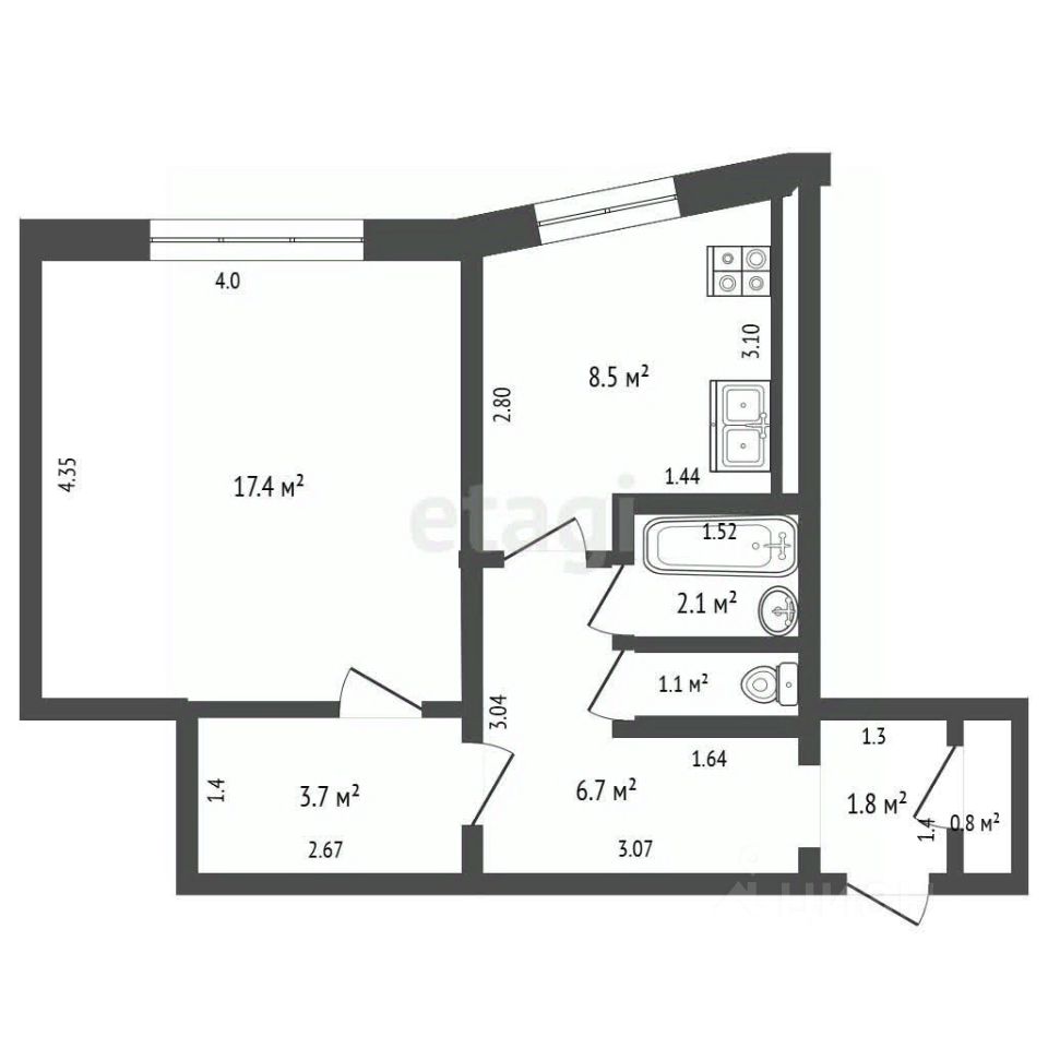 Общая площадь составляет 42.1 кв.м, где 17.4 кв.м отведено под жилую комнату, а площадь кухни 8.5 кв.м. Функциональная планировка включает в себя просторный коридор и раздельный санузел. Квартира расположена на 6 этаже дома. Центральное отопление.