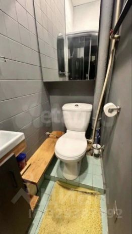 Компактный совмещенный санузел, отделанный кафелем, добавляет удобства.