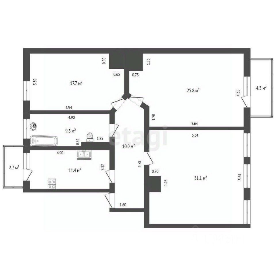 - жилая комната 31.1 кв.м.