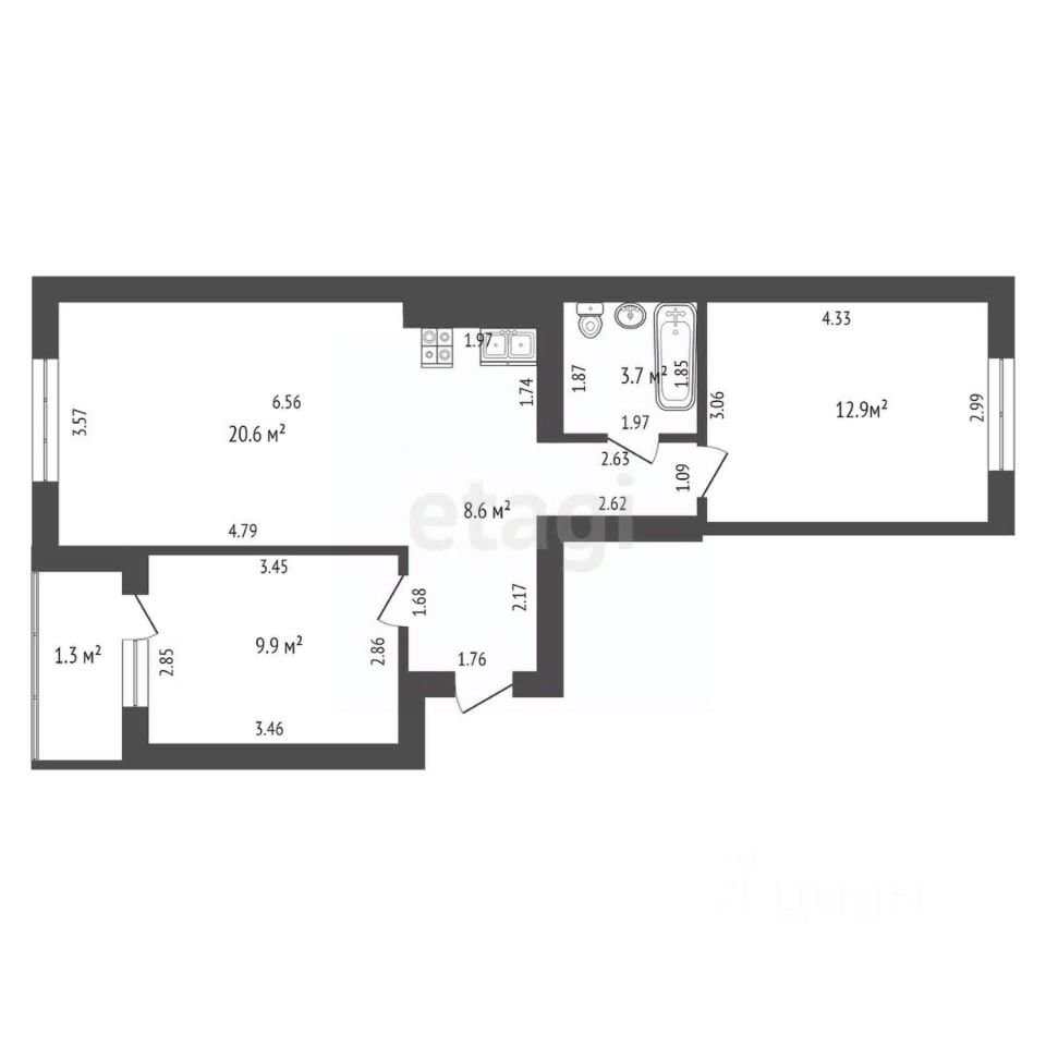 -Лоджия - 1,3 кв.м.