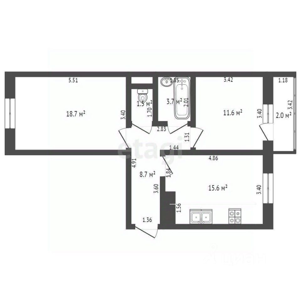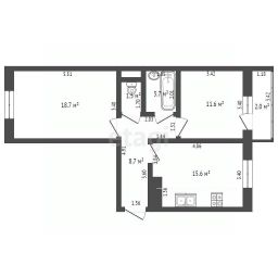 Квартира общей площадью 64 м2. Окна выходят на обе стороны (распашонка). В площадь входит: