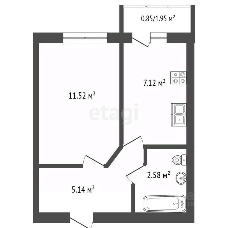 - комната — 11,6 кв.м;