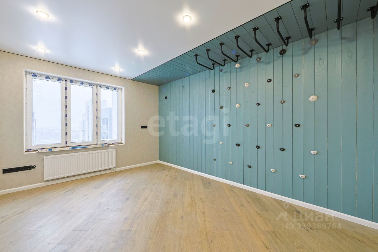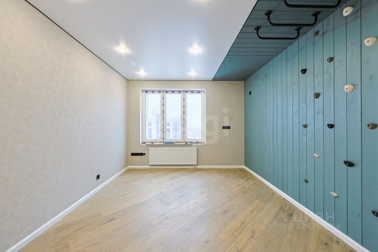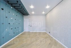 Продуманный дизайнерский ремонт, детская комната выполнена с элементами скалодрома и подвешенного на потолок рукохода.