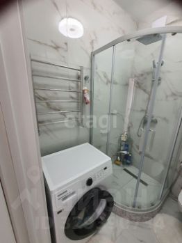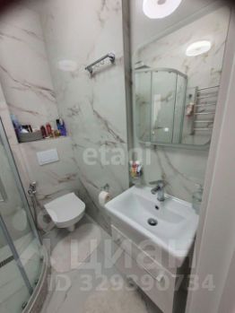 В санузле установлено зеркало с подсветкой , инсталляция, гигиенический душ, душевая кабина с трапом, тёплые полы.