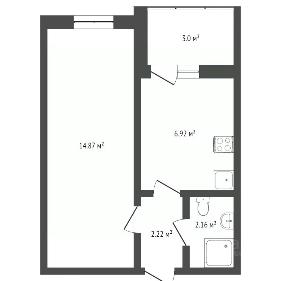 • Площадь — 26,5 м², жилая — 19,1 м²