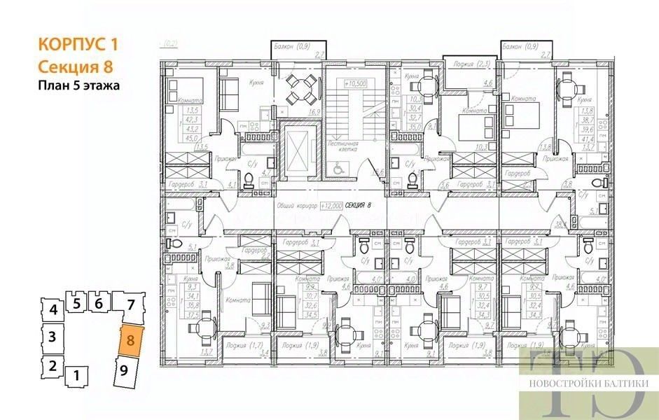 Квартира: 1 к 32,70 кв.м., 5 этаж в комплексе Симфония моря, 1 очередь, корп.1, сдача: 1кв. , этажей: 5, адрес Пионерский г., Прибрежная ул., д. 23 корп 1, Застройщик: Модуль-Стройград.
