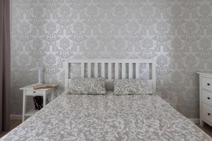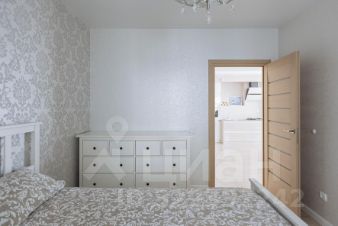 Спальня просторная, с выходом на застекленный балкон.