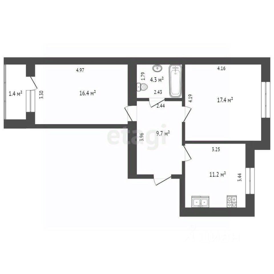 60,4 м²