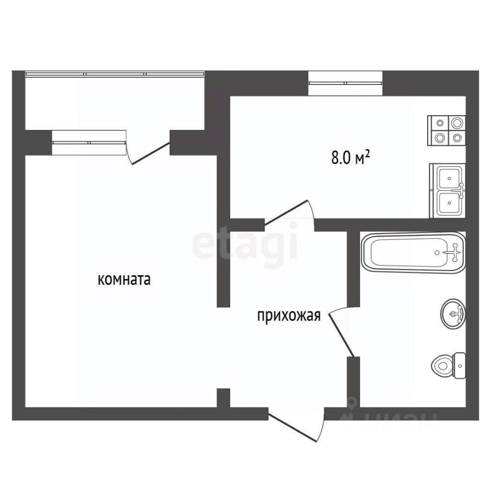 Планировка с изолированной комнатой и кухней 7 кв.м.