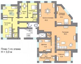 просторная кухня - 14м2, две спальни (20+15м2), гостиная (21,5м2)