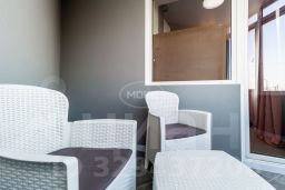 Большая застекленная лоджия - дополнительная зона для отдыха, где будет приятно встречать рассвет с чашечкой кофе и свежим круассаном или провожать закат в приятной компании с бокалом вина, удобно разместившись на мягких креслах на лоджии.