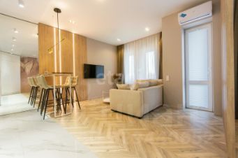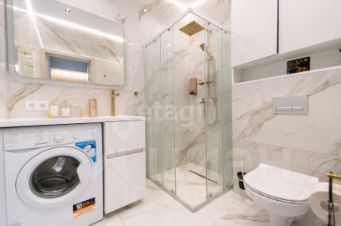 - Полностью укомплектована всем необходимым для комфортного проживания, включая кондиционер и теплые полы по всей квартире (в ванной комнате — электрические).