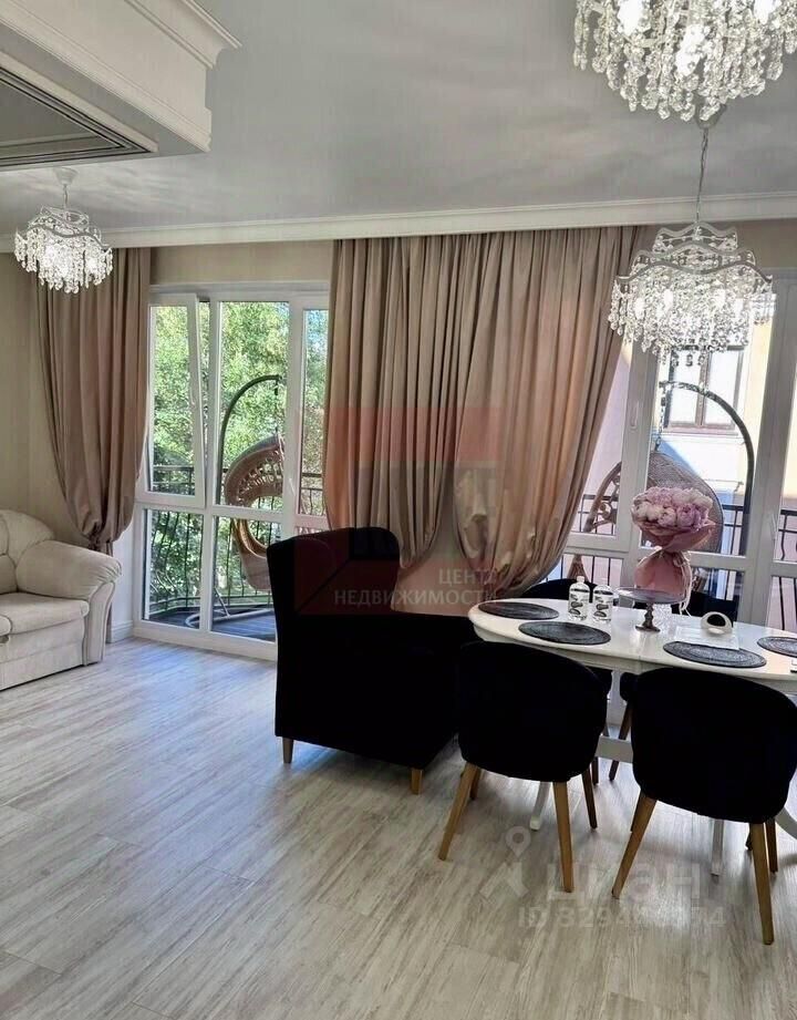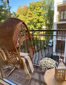 В просторных апартаментах площадью 53 кв.м. выполнен дизайнерский ремонт с использованием качественных материалов: спальная зона отделена от основной студии раздвижной системой. Кухня и ванная комната оборудованы сантехникой "Villеrоy & Восh", бытовой техникой "Воsсh" и "Воrk". Кондиционер - сплит система. Установлены стиральная, сушильная и посудомоечная машины. Спальная система оборудована ортопедическим матрасом с независимыми пружинами и дополнительным топпером. В студии очень много света: 6 хрустальных люстр, 2 бра, подсветка кухни. Особая изюминка апартаментов - балкон с террасной доской и ротанговыми креслами-качалками.