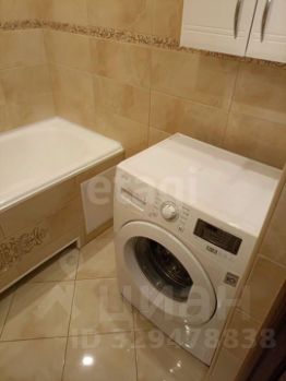 Совмещенный санузел: стиральная машина, подвесные/напольные шкафы, скрытые коммуникации.