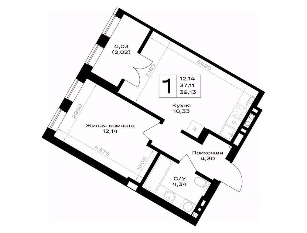 Общая площадь39,13 м²
