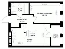 Продается 1-комн. квартира, 39,09 м²