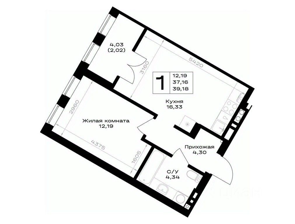 Общая площадь39,18 м²