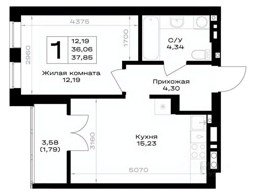 Общая площадь37,85 м²
