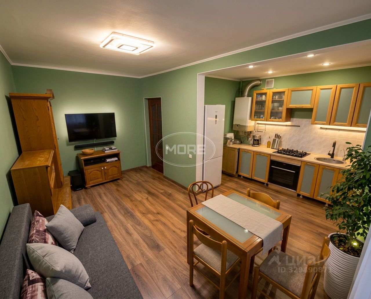 Большая кухня-гостиная 21,5 м², что создаёт простор для проживания.
