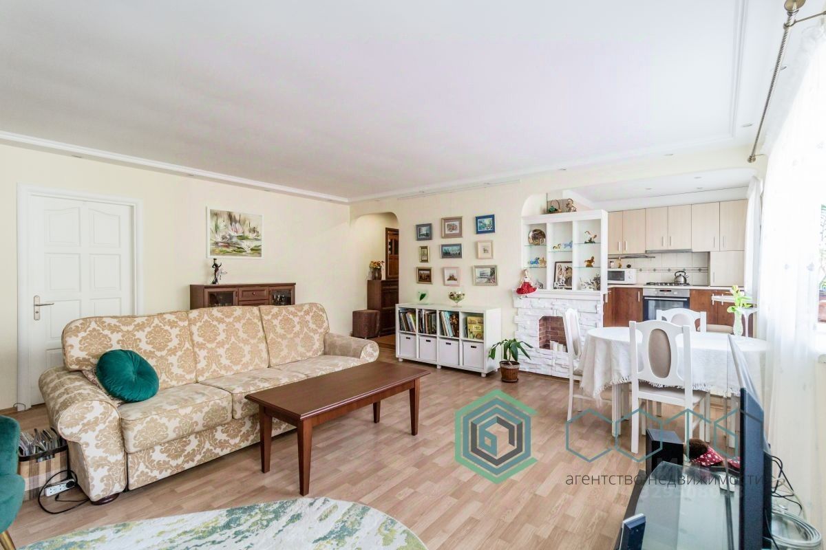 Удобная планировка : комфортная кухня 6.6 кв.м., просторная гостиная 28.3 кв.м. и жилая комната 11.9 с окнами, выходящими во двор, раздельный санузел и коридор. Окна кухни и гостиной выходят на улицу.