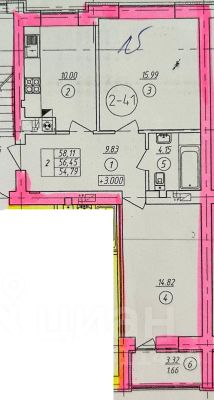 Площадь квартиры с лоджией 57 кв.м., площадь квартиры без лоджии 55,4 кв.м. Жилые комнаты изолированные, площадью: 16 кв.м. и 15 кв.м., кухня: 10 кв.м. Лоджия с панорамным застеклением.