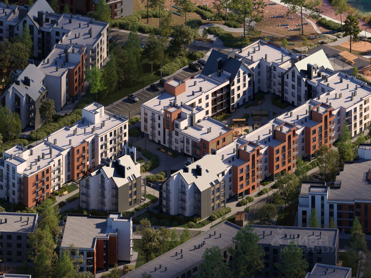 Экополис Виридиан — это квартал у озера в зелёной части города, где продуманы малоэтажные дома, закрытые дворы без машин и прогулочные зоны.