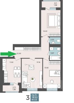 Огромный холл (12.5 м²): Где легко разместится вместительная гардеробная система.