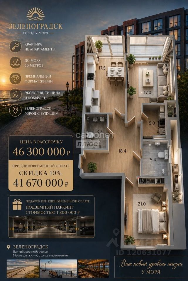 Арт. 135213489 Элитная квартира с отделкой на берегу моря. Только в мае специальная скидка 4,6 млн и машиноместо в подземном паркинге в подарок при 100% оплате.
