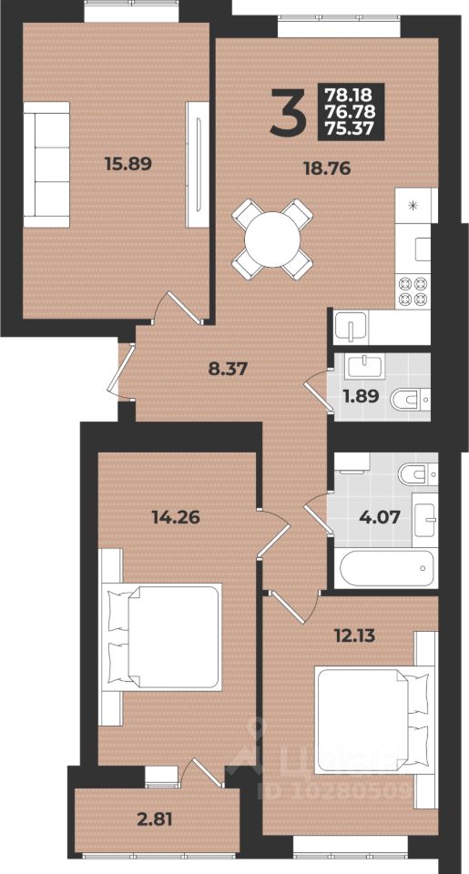 Общая площадь78,18 м²