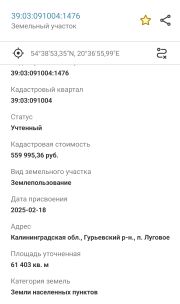 Электричество, газ, оптоволокно находятся рядом с участком! Кадастровый номер 39:03:091004:777