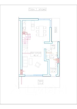 На 1 этаже - прихожая, гостевой санузел, хоз.помещение - топочная, family room с выходом на террасу и придомовую территорию.