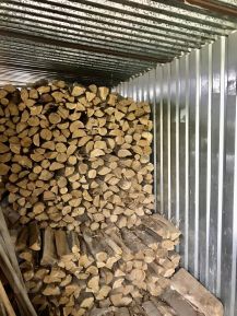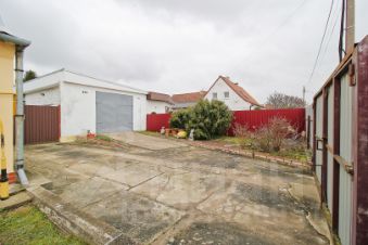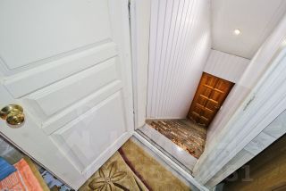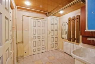Большой гараж (высота ворот 4 метра) позволяет заехать и поставить грузовой автомобиль (фура) с ямой для выполнения ремонтных работ, установлены стеллажи, возможно использование под мастерскую.
