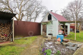 На участке оборудована закрытая беседка с подведенным электричеством. Возле беседки расположена баня на дровах.