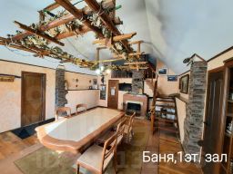 Общая площадь 89,7 м.кв., сауна с парилкой, зал с камином , санузел, душ, на 2 этаже небольшая комната отдыха. Материалы строения : деревянный сруб, частично блоки, фасад - сайдинг, крыша скатная, металочерепица. Мебель из натурального дерева. Сауна-парная обита вагонкой.