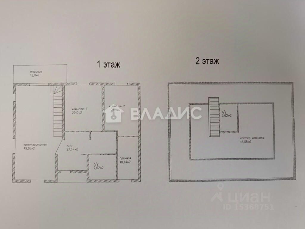 Мастер-комната 43.05 кв.м., санузел 5.62 кв.м.