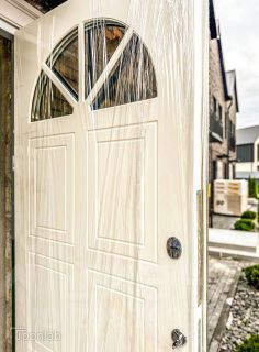 Красивый фасад в английском стиле, дорогие входные двери,