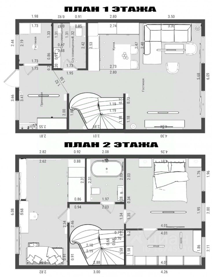 + потолки от 2,9 метра до 3,3 метра,