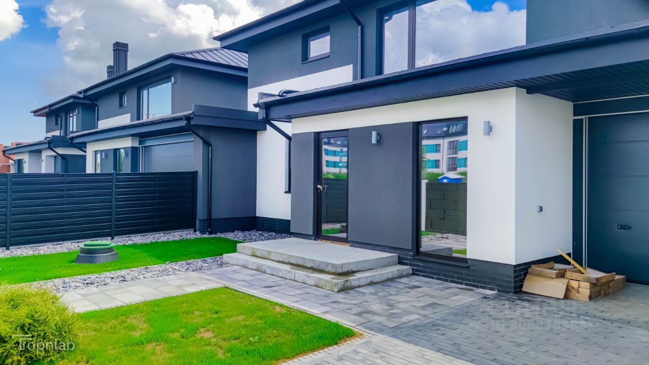 Всего 5 домов в комплексе от 165 кв.м. до 220 кв.м. Собственная территория огорожена забором с калиткой и электрическими откатными воротами. Гараж и 2 парковочных мест.