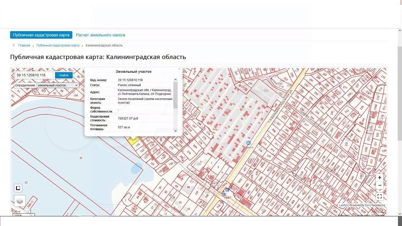 1 Кадастровый номер: 39:15:120810:118 (557 м.кв.)