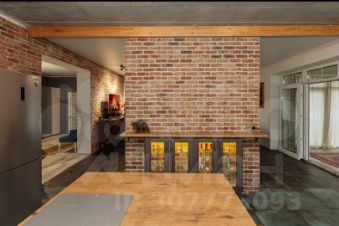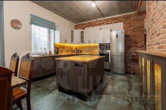 Кухня-гостиная с дизайнерской мебелью из натурального дуба, на полу итальяская плитка Caesar, Grazia. Вся мебель и бытовая техника остаются.