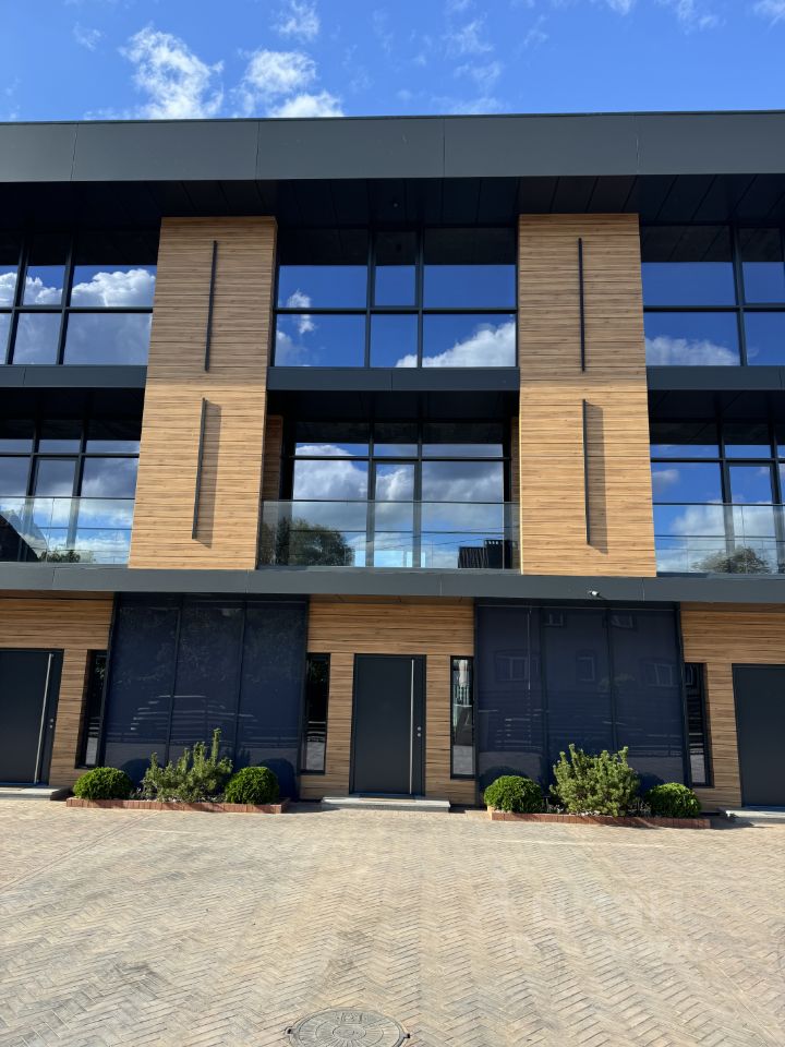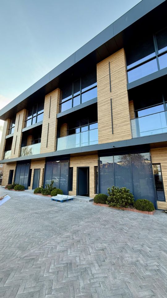 Таунхаус построен по авторскому архитектурному проекту. При строительстве использовались только качественные материалы. Все стены выполнены из тёплого керамического блока толщиной 380 мм, утеплённый фасад облицован HPL панелями, тёплые и надёжные алюминиевые окна, входные двери Hoermann, центральные сети и Интернет, автономное отопление, 15 Квт электроэнергии. Зимний сад с энергосберегающим остеклением.