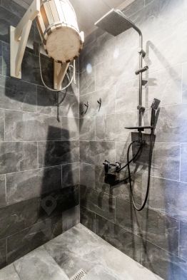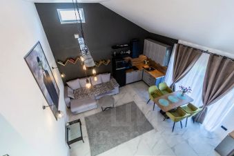 Общая площадь 90 м2, просторная кухня-гостиная в 30 м2, надстроенная комната на 2-ом уровне около 20 м2 антресольного типа, грамотно оборудованная сауна в отдельной секции дома - всё это до мельчайших деталей было запроектировано и воплощено в реальность хозяевами.