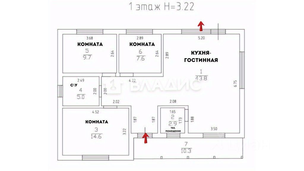 - 3 спальни - 14,6 + 9,7 + 7,6 м.кв.
