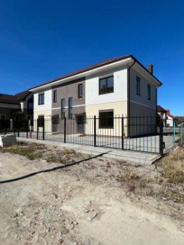 Фасад отделан красным кирпичом. Внутренняя отделка стен под покраску, теплый пол первый этаж, второй этаж радиаторы, потолок второго этажа - гипсокартон, лестница ж/бетон, газовые котлы.