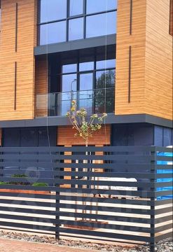 Таунхаус построен по авторскому архитектурному проекту. При строительстве использовались только качественные материалы. Все стены выполнены из тёплого керамического блока толщиной 380 мм, утеплённый фасад облицован HPL панелями, тёплые и надёжные алюминиевые окна, входные двери Hoermann, центральные сети и Интернет, автономное отопление, 15 Квт электроэнергии. Зимний сад с энергосберегающим остеклением. Центральные коммуникации с подземным подключением, что не нарушает гармоничный вид участка. Предусмотрена система кондиционирования и вентиляции.