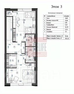 3 этаж: 2 спальни 24.75 и 23.81 кв.м с гардеробной и собственной ванной комнатой.
