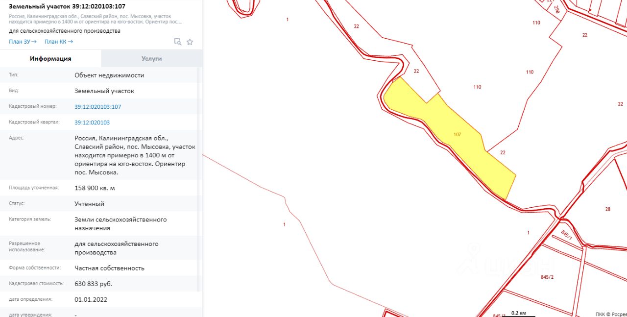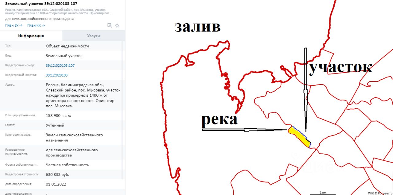 Отличный сухой участок правильной формы. Категория земель: Земли сельскохозяйственного назначения. Разрешенное использование: для сельскохозяйственного производства. От Калининграда до Мысовки организовано движение по новой асфальтовой дороге прекрасного качества.