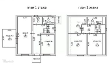 2 этаж : две жилые комнаты, санузел, гардеробная.