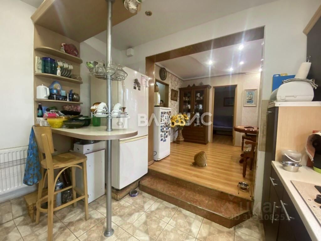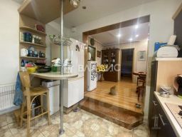 +просторная кухня, расположенная на другом уровне-пол ниже , смотрится очень интересно
